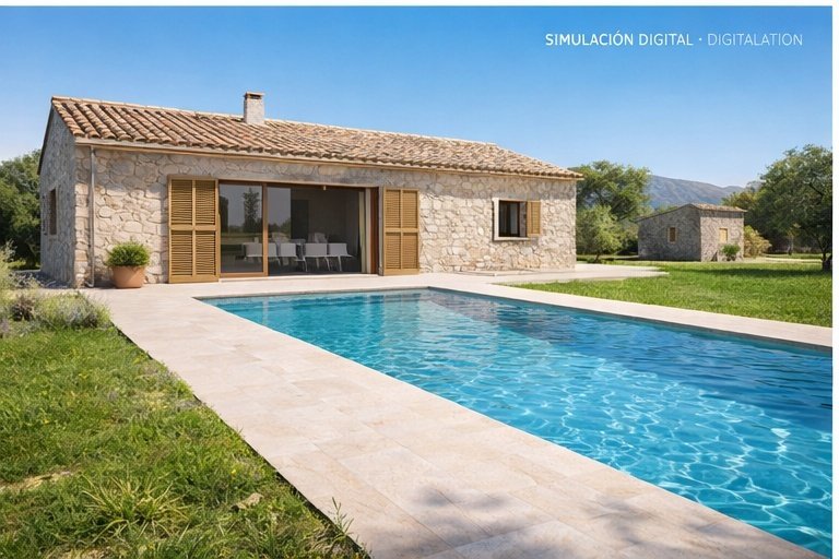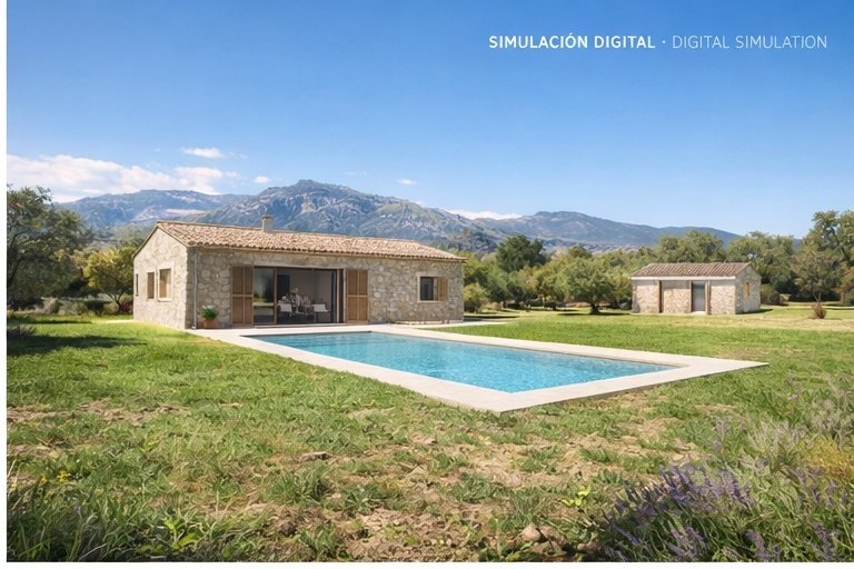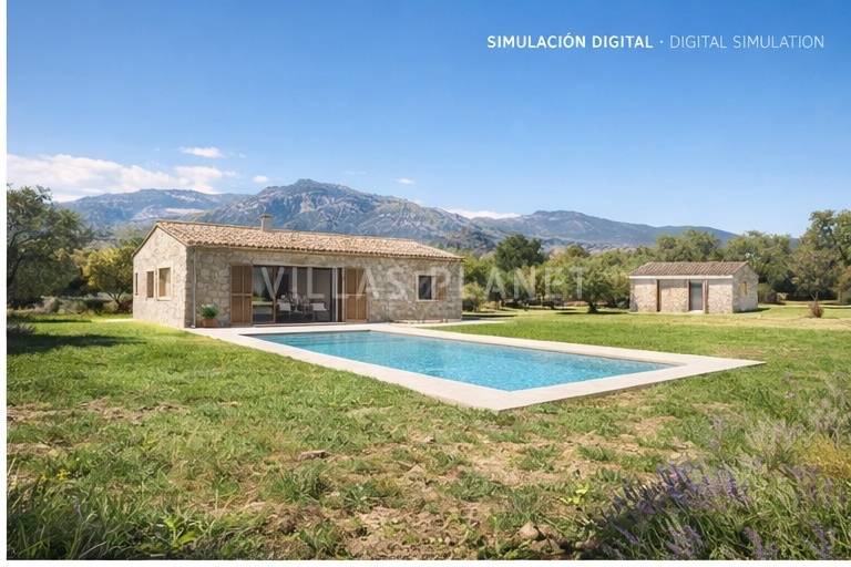 Dispone de un proyecto con licencia aprobada, para edificar una vivienda unifamiliar aislada de 150 m² de superficie en una sola planta, piscina de 32 m² (8 x 4 m.) y almacén asociado a la vivienda de 40 m² (antigua caseta que se restaura por completo).